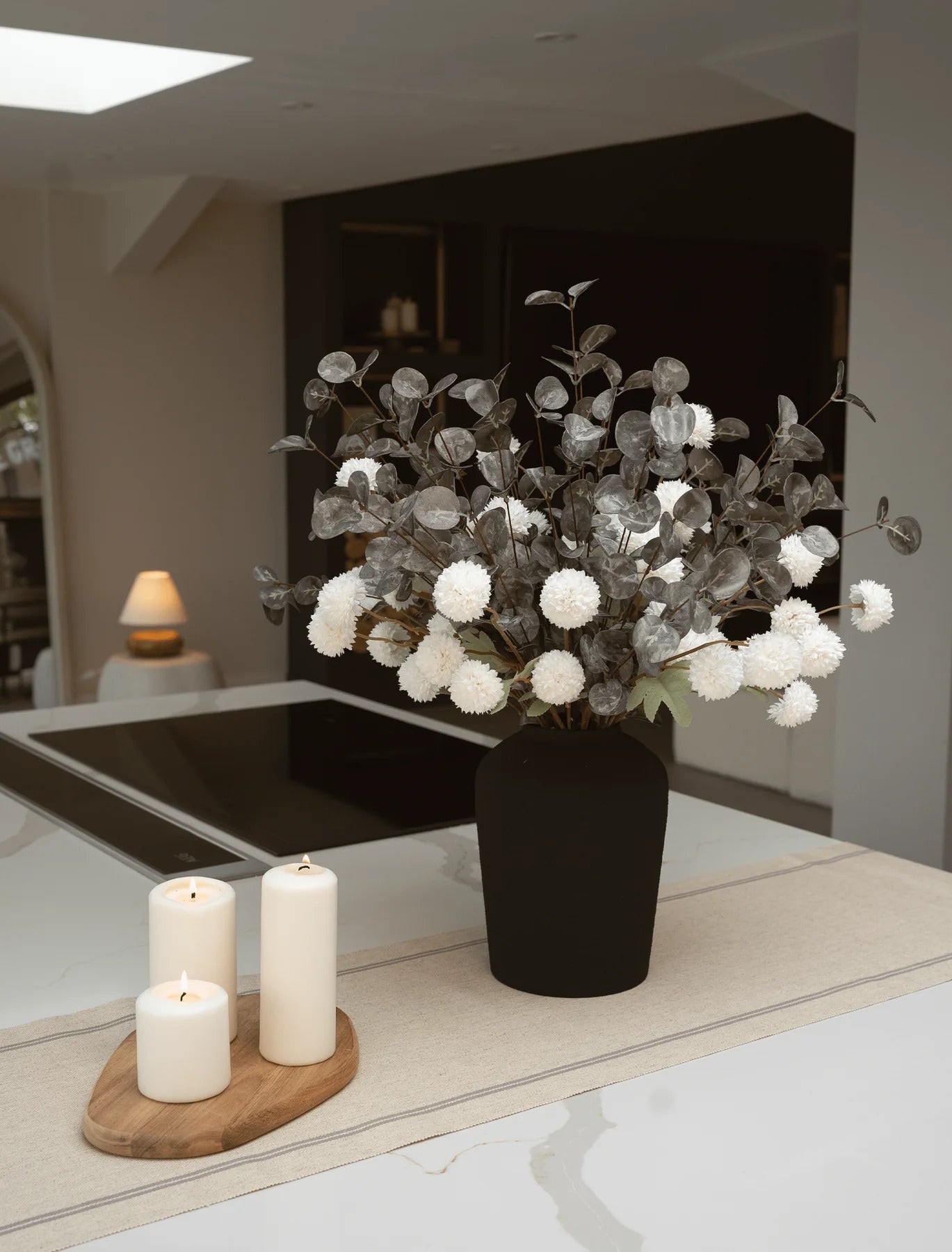 Faux flowers can be lightly dusted with a soft, dry cloth or gently wiped with a damp cloth if needed. Vases can be cleaned with warm water and a mild detergent. Avoid abrasive cleaners to maintain their finish.